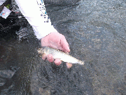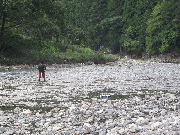 上流部や中流部下流からは、川幅の広いところで、残り垢を狙って可能。浅瀬では、新垢もつきだしています。