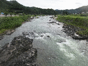 山国地区内で3名ぐらいの方が、おとり確保して友釣り、水位が高く、素掛け、友釣りとも難しそうですが、何匹か釣れてそうです。