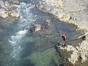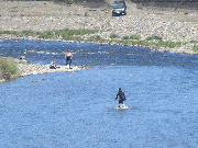 網もめがねで見てからでは、鮎の群れが分からなくなります。