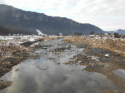 河川は、昼間も凍結しています。