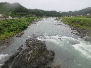 水位下がりましたが中流部は、まだ高いです。