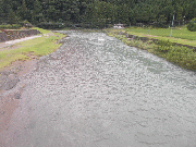 午後4時30分水位、上黒田 2.09m 周山 0.86m 中地 1.25m 五本松 0.39m 朝から少し減りましたが、午後2時頃から雨に。