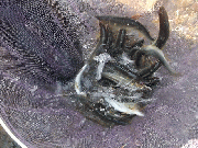 魚ケ淵で32匹、16から23センチ。タモの鮎。