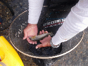上流から下流まで多い方で15匹前後、サイズは、大滝から下流では、23センチが釣れているようです。
