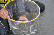水温も25度に、おとりカンも水の入れ替わりと水深のあるところに。