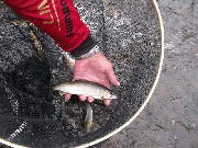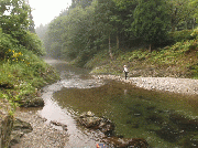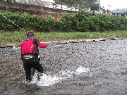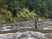 [内容] 昨夜夕立有り少し水位アップしましたが、漁協前で平水より約10センチ高、濁り無し。