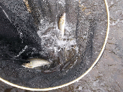 水温も25度に、おとりカンも水の入れ替わりと水深のあるところに。