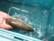 中の橋で小学六年生の河野隆さん3時間で7匹。