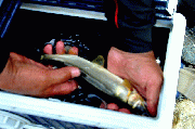 水温も27度に、おとりカンも水の入れ替わりと水深のあるところに。