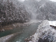 [内容] 漁協前で平水より約35センチ高め、一時は70センチ高に早朝より吹雪いています。