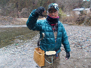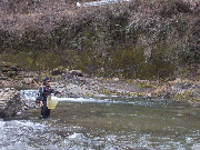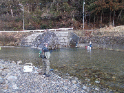 放流物は、多い方で20匹以上の方もありますが、食いは鈍そうです。エサをイクラからミミズに変えたりもされています。