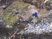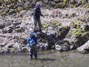 集中放流区は、例年とは水位が高かったためかあまごがある程度ちらばっています。