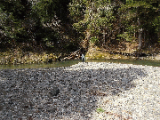 集中放流区は、例年とは水位が高かったためかあまごがある程度ちらばっています。