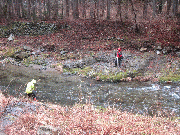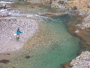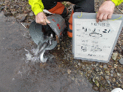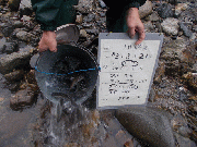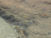 集中放流区は、例年とは水位が高かったためかあまごがある程度ちらばっています。