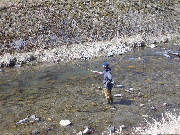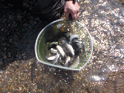 集中放流区は、例年とは水位が高かったためかあまごがある程度ちらばっています。