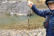 集中放流区は、例年とは水位が高かったためかあまごがある程度ちらばっています。