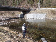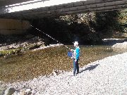 流心で釣れています。見えているよどみは、数匹釣れて止まるとか。