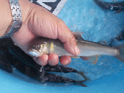 晨渡橋下流で20匹、16から20センチ。