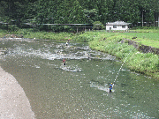 午後5時水位、上黒田 1.77m 周山 0.50m 中地 0.69m 五本松 0.15m 水況には、今のところ影響有りませんが、濁りが出ている谷もあります。
