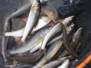 水温も上がらなく、垢もついているところが少ない様で一桁の方が大半の中、藤木さんがすし米下流16匹(写真最後のタモ、午後2時過ぎ。)
