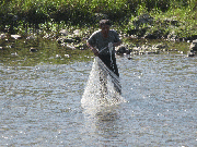 本日の網漁は、高水で捕獲しにくいところが多かったですが、黒田から上流では、60匹。山国地区150匹。周山地区150匹。宇津地区130匹。(漁の時間や人数は、いろいろですが、1人頭多い人60匹。平均10匹くらいと予測します。)