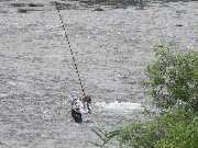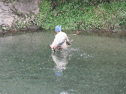 網も水位が高いのとアユがすばしこくなってなかなか囲めません。