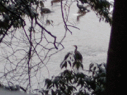 工事の影響で魚は、上流へあがっているようです。今朝はエラでカワウ20羽以上、木の葉で写真2羽だけですが。