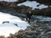 今朝方の雨と気温が上がった雪どけとで水位が上がってきたと思われます。