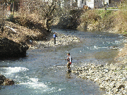 放流物は渕や端がポイントで午前中、午後から5匹程度釣られていました。エサ釣りです。