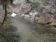 釣果は、数匹程度で一箇所良いところ5匹程度、歩いて拾い釣りもよいのでは。解禁前の放流物は流心でも釣れるようです。