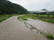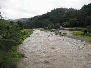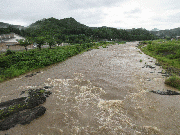 午後7時水位、黒田 2.57m 周山 1.27m 中地 1.01m 五本松 0.85m 漁協下で90センチ高50から70センチ高、垢が飛んでいると思います。上流の降った分で今後増える可能性あり。