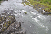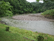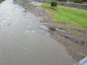 午後5時現在、漁協下で約30センチ高、笹濁り。山陵橋付近までは濁りがとれています。写真4段目。