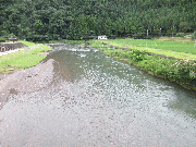 午後4時30分水位、上黒田 1.82m 周山 0.53m 中地 0.65m 五本松 0.22m 約20センチ高、濁り無し。
