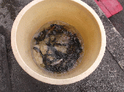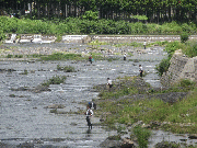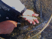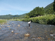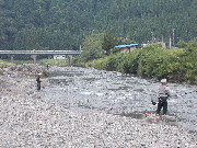 午前中、勝山氏下黒田36匹、13から18センチ。(オケのアユ)