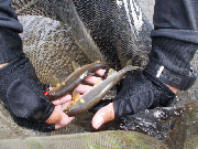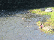 午後4時までに多い人では、15から30匹、15から21センチ。昨日の急激な増水の変化が釣果には、良かった感じです。