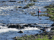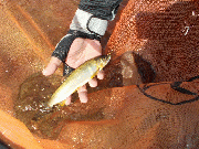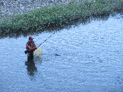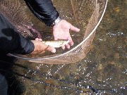 午前中多い人で10匹前後、午後から夕方にかけては、水温が上がりきったところで10匹前後、昨日の方が全般に良く釣れていました。午後4時過ぎまで、高野から漁協下流で25匹。サイズが良くなってきています。
