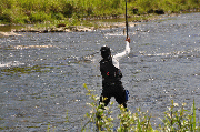 本日の釣果は、飛び石付近や江口橋付近で20匹の釣果がありましたが他の所では、10から15匹前後の釣果。ほぼ平水になってきています。