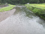 午後4時30分水位、上黒田 1.79m 周山 0.57m 中地 0.64m 五本松 0.22m 朝から5センチ引きました。