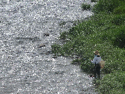 素掛けで何匹か捕獲されています。また、それをおとりとして友釣りに切り替えておられる方も。網は、もう少し引かないと難しい状況です。