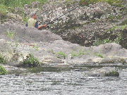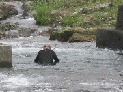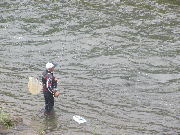 こきの鮎店、吉澤さん午後2時から友釣りをされています。30分ほどで21センチ前後3匹。(その後も釣られています。)