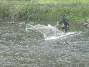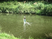 所々アユの群れが見受けられますが時間帯もあり100メートルほどの間を上がったり下がったりしています。