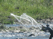 水が下がり網の入る所が増え増した。まだ入らないところも有り所々アユの群れが見受けられます。