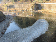 川の澱みには、氷が薄くはっています。