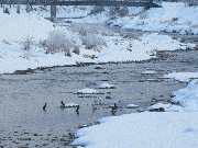 飛来は雪が降っても関係なし。氷点下7度でも飛来は、してきています。日当たりの良いところに着水しています。