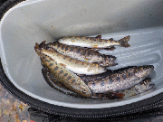 集中放流区、ルアーで10匹、エサ釣り佐々木さん85匹。