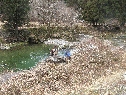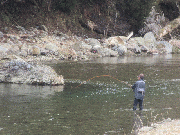 水位が下がり気温も昨日と7度差低い気温です。エサ釣りの方では15匹程度。キャッチアンドリリース区間入り口上流では、放流あまごでなく天然2匹、20から25センチ近いもの2匹。