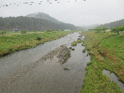午後5時水位、漁協下で約45センチ高で濁っていますが上流から濁りはとれてきています。水位上黒田 2.04m 周山 0.79m 中地 0.96m 五本松 0.42m 明日には、濁りはとれると思われます。あまご釣りは、上流部や谷で可能になってくるのでは。