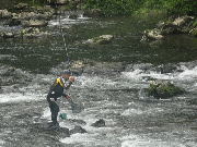[内容] 漁協下で平水より約5センチ高、濁り無し。水温17度、気温15度。
