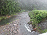 午前8時、10センチ増え平水より約20センチ高。六ヶからの小野内谷。殿橋からの稲荷谷から濁りが出ている影響で薄い笹濁りになっています。