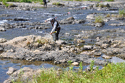 写真2段目左、カワウがアユを追い回している写真。カワウに入られた後は、しばらく釣れません。